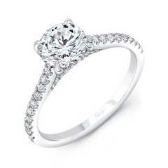 White Polished 14 Karat Engagement Ring With 56=0.32Tw Round Diamonds