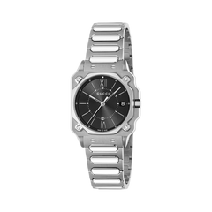 First introduced in the 1970s, the G-Flat watch pays homage to the heritage designs of the House with a modern touch. Characterized by octagonal angles and a multi-layered profile, the watch evokes the architectural landscape of the 1970s. This watch appears in stainless steel with black galvanized dial and date opening.
