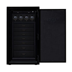 The ultimate in security for your watches, jewelry & valuables. Forged in American steel, UL tested and certified for burglary & fire, the Atlas is an impenetrable fortress. Painted steel polished to a mirror finish, drawers lined with LusterLoc™ treated fabrics that stop tarnishing for 35 years. Watch winders are controlled by WOLF’s Bluetooth connected App. Control one or all winders at the same time.