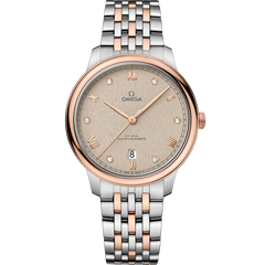 A timeless collection since 1994, the OMEGA De Ville Prestige is now in its third generation Continuing to represent classical design and refined elegance, the timepieces offer a range of patterns, finishes and colours to suit different lifestyles and personalities In this 40 mm stainless steel - 18K Sedna™ Gold model, the flat PVD linen dial features a stamped random vertical pattern and an opaline finish The display is distinguished by PVD Sedna™ Gold coloured hands, as well as alternating Roman numerals and diamond markers that are set in 18K Sedna™ Gold holders The pure look of the timepiece is completed by a date window at 6 o’clock, and a railway minute track on the outer zone This Master Chronometer certified watch is presented on a stainless steel - Sedna™ Gold bracelet and is driven by the OMEGA Master Co-Axial Calibre 8800, which can be admired through the scratch-resistant sapphire crystal caseback
