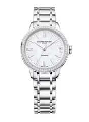 With 60 brilliant cut diamonds and a mother-of-pearl dial, the Classima Lady 10479 is a radiant wristwatch that reflects the grace and beauty of the wearer. This automatic watch comes with a stainless steel bracelet and transparent crystal case back.