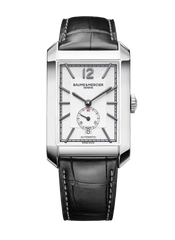 Balancing a silver dial with Arabic numerals at 12 o’clock and riveted black ruthenium indexes around the opaline, this automatic watch, offers a refined masculine aesthetic. It comes with an interchangeable black alligator strap with fine grey stitching.