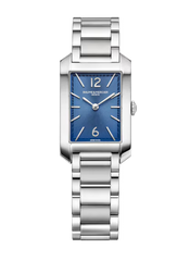 Powered by quartz movement, this elegant ladies watch comes with modern Arabic numerals at 12 and 6 o’clock and rhodium-plated indexes for a sleek look paired with the watch’s blue dial. The stainless steel bracelet features 3 rows and it can be easily changed with an alternative watch strap.