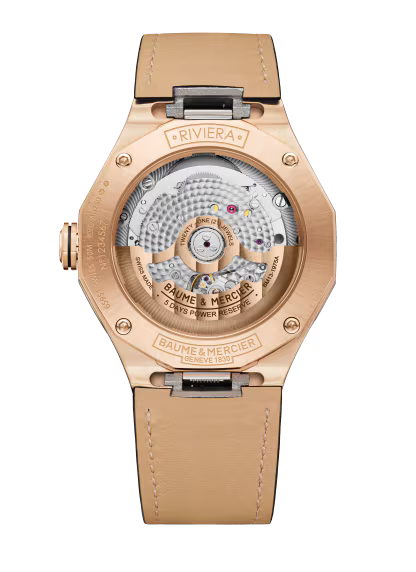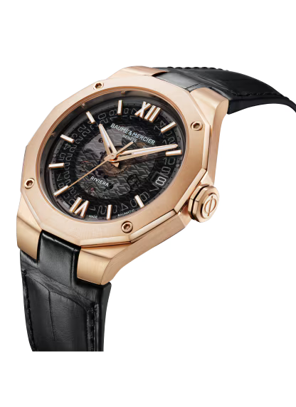 The quintessence of chic, this watch asserts all the beauty and opulence of the region’s carefree lifestyle. Gold radiates through the fading light, as the saturated daytime colors of the villas on the horizon dissolve into ethereal nighttime glimmers. In one of the more exclusive spots, hidden from view like a well-kept secret where music and laughter herald the evening, resonating in a playful atmosphere, someone – perhaps a woman, perhaps a man – is proudly wearing this watch. The fine materials of the Riviera Gold make it a symbol of success and a taste for everything that is beautiful and precious. Comparable to the durable heritage of the Riviera, it carries forth the timeless appeal of artistic craftsmanship that turns time into an eternal gem.