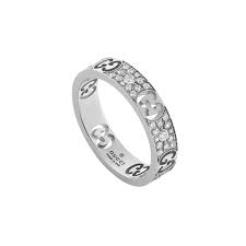 White 18 Karat Gucci Icon Diamond Ring Size 6.75