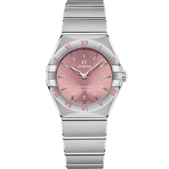This 28 mm model, with case and bracelet in stainless steel, features indexes and applied elements in 18K white gold, set against a striking blush rose dial.