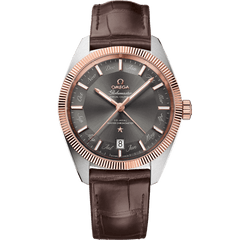The Globemaster is already a legendary name in the OMEGA family. Now it has been updated to become the world's first Master Chronometer, further enhancing its reputation within the watchmaking industry. For this 41.00 mm model, the stainless steel case features a polished fluted 18K Sedna™ gold bezel. The caseback includes a Central Observatory medallion set in scratch-resistant sapphire crystal. The sun-brushed grey "Pie Pan" dial is reminiscent of the first 1952 Constellation model. Each of its facets includes a month of the year in keeping with the Annual Calendar function. There is an 18K Sedna™ gold Constellation star and OMEGA logo, and 18K Sedna™ gold hands and indexes which have been filled with Super-LumiNova. This watch has a brown leather strap and is driven by OMEGA's Co-Axial Master Chronometer Annual Calendar Calibre 8922, featuring revolutionary anti-magnetic technology.