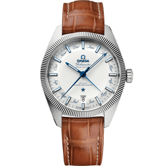 The Globemaster is already a legendary name in the OMEGA family. Now it has been updated to become the world's first Master Chronometer, further enhancing its reputation within the watchmaking industry. For this 41.00 mm model, the stainless steel case features a hard metal (tungsten carbide) bezel. The caseback includes a Central Observatory medallion set in scratch-resistant sapphire crystal. The opaline-silvery "Pie Pan" dial is reminiscent of the first 1952 Constellation model. Each of its facets includes a month of the year in keeping with the Annual Calendar function. There is a blued Constellation star and OMEGA logo, and blued facetted hands and indexes which have been filled with Super-LumiNova. This watch has a light brown leather strap and is driven by OMEGA's Co-Axial Master Chronometer Annual Calendar Calibre 8922, featuring revolutionary anti-magnetic technology.