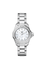 Decked out with a VS diamond-set bezel and dial, this TAG Heuer Aquaracer combines absolute elegance with extreme robustness. With a 30mm steel case and reliable quartz movement, this versatile tool watch is the perfect everyday companion.