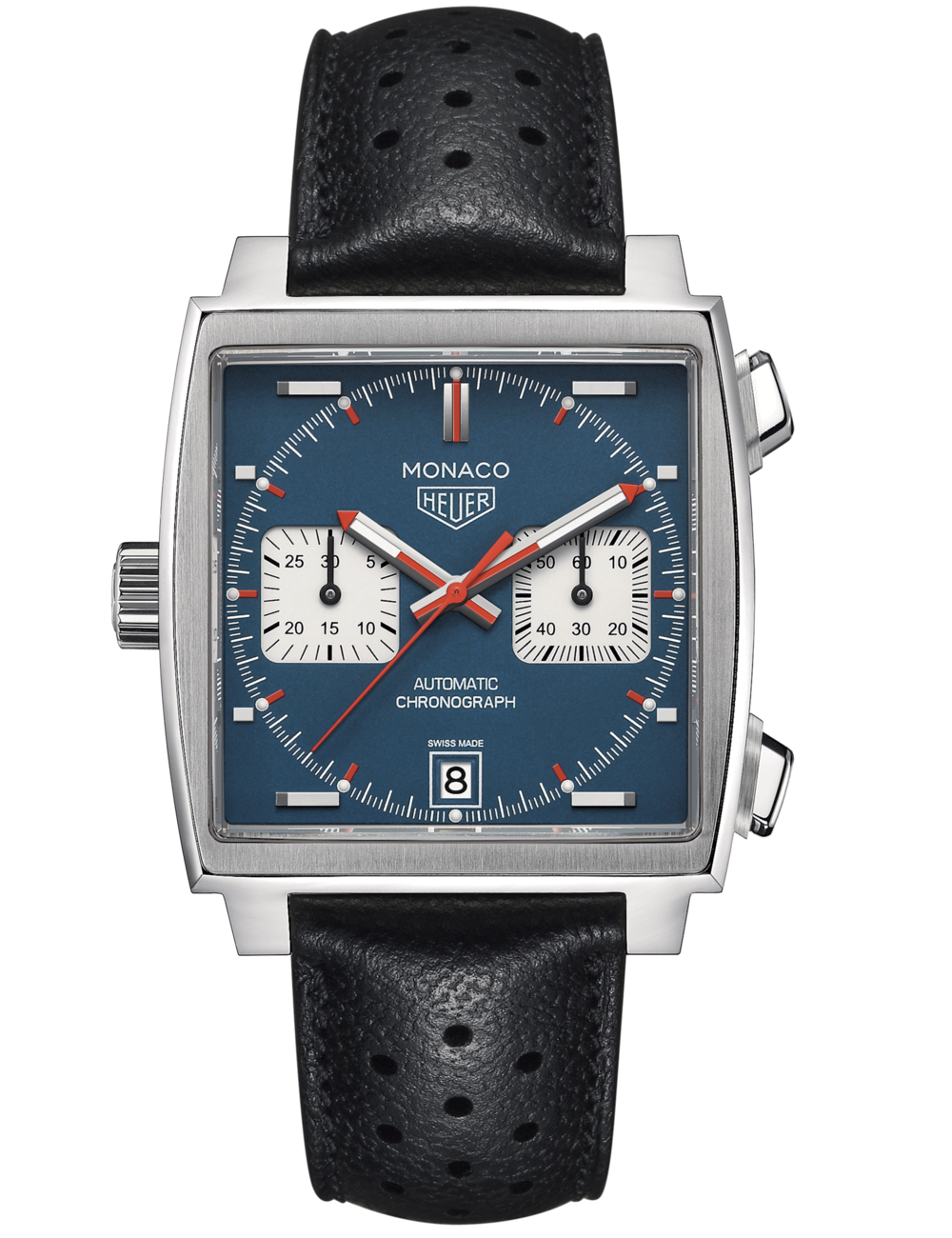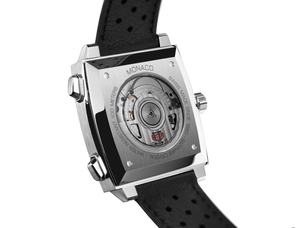 This automatic chronograph Monaco Calibre 11 is THE original model, the very first square and waterproof chronograph in the world. Revolutionary and icon of the "King of cool" Steve Mcqueen, this calibre 11 edition still features the famous crown on the left; it was a way of showing that manual winding was no longer necessary.