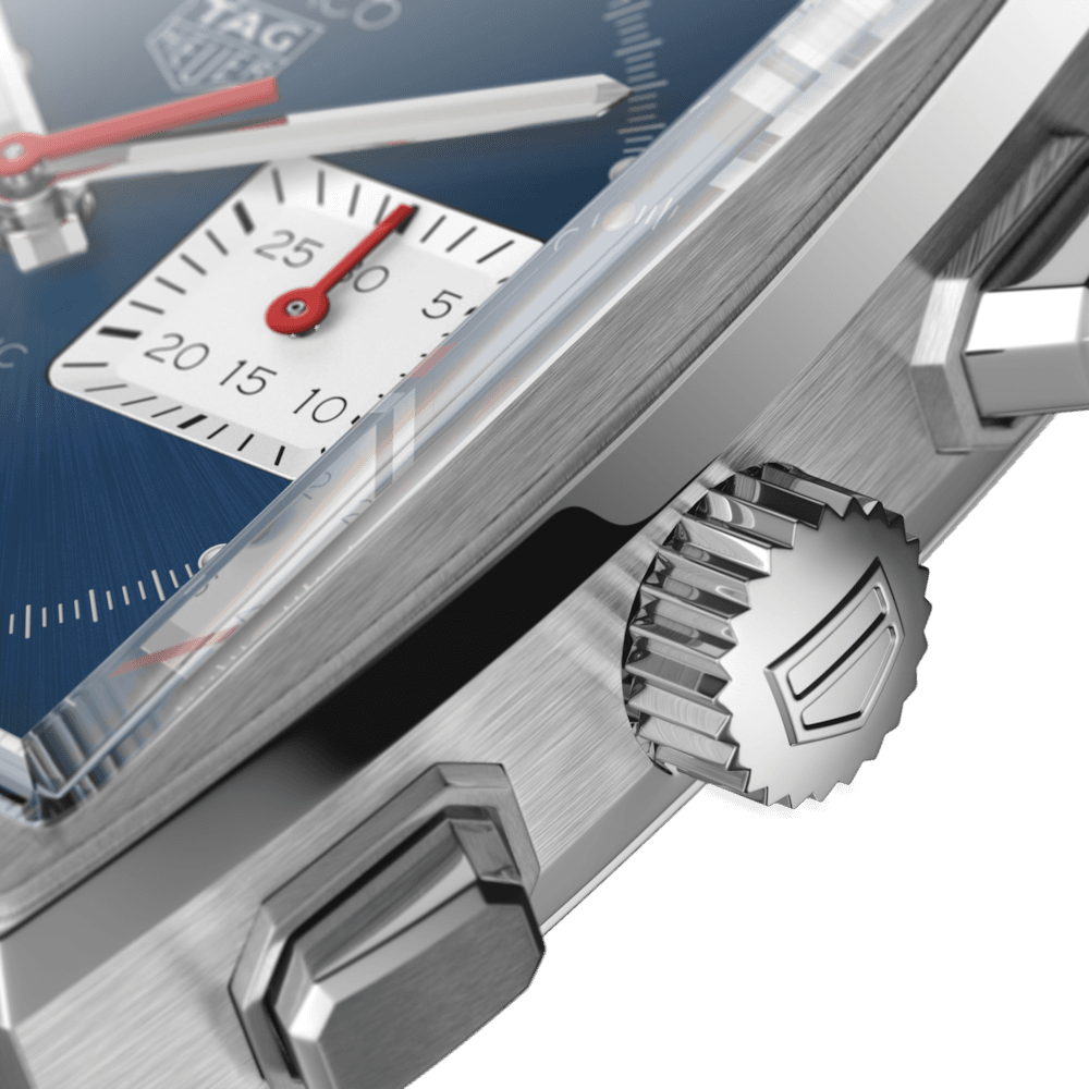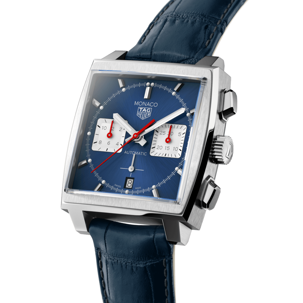 The first Monaco outfitted with an in-house Heuer 02 movement. Vintage, timeless design faithful to the blue, square-faced original Monaco, and packed with 80 hours power reserve.