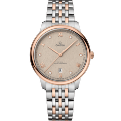 A timeless collection since 1994, the OMEGA De Ville Prestige is now in its third generation Continuing to represent classical design and refined elegance, the timepieces offer a range of patterns, finishes and colours to suit different lifestyles and personalities In this 40 mm stainless steel - 18K Sedna™ Gold model, the flat PVD linen dial features a stamped random vertical pattern and an opaline finish The display is distinguished by PVD Sedna™ Gold coloured hands, as well as alternating Roman numerals and diamond markers that are set in 18K Sedna™ Gold holders The pure look of the timepiece is completed by a date window at 6 o’clock, and a railway minute track on the outer zone This Master Chronometer certified watch is presented on a stainless steel - Sedna™ Gold bracelet and is driven by the OMEGA Master Co-Axial Calibre 8800, which can be admired through the scratch-resistant sapphire crystal caseback