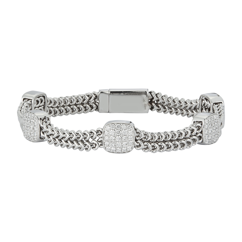 White 14 Karat Bracelet With 5 Square Diamond Sections With 1.50Tw Round Diamonds