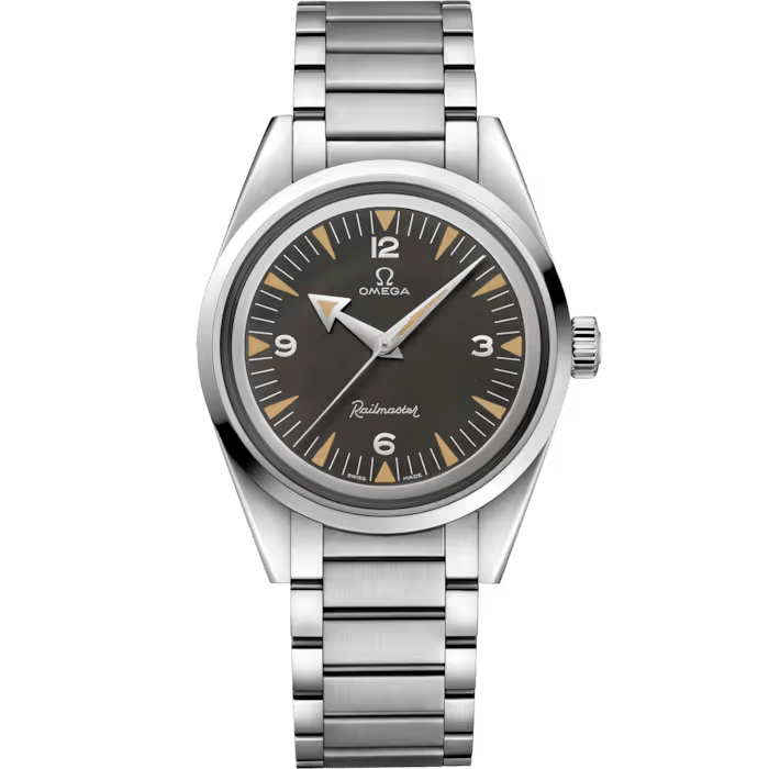 The stainless steel bracelet has been updated for strength and features a retro-style OMEGA logo on the clasp.