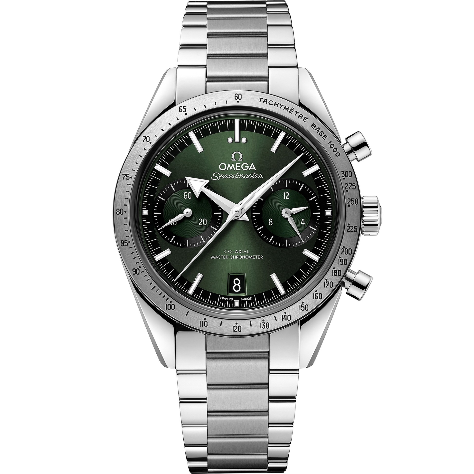This 40.50 mm model, inspired by the legendary 1957 original, features a stainless steel case and a green dial with rhodium-plated hour markers and “Broad Arrow” hands - all featuring white Super-LumiNova. There is a date window at 6 o’clock, a small seconds subdial at 9 o’clock, and 12-hour and 60-minute chronograph recorders on the subdial at 3 o’clock.