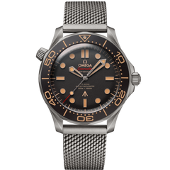 Identical to 007's watch in No Time To Die this 42mm Seamaster, in strong yet lightweight Grade 2 Titanium, sports a brown tropical aluminium bezel ring and dial.