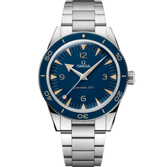 OMEGA first introduced the Seamaster 300 in 1957 - designed especially for divers and professionals who worked underwater. More than 60 years later, the timepiece has been completely upgraded with an enhanced form that is ready for a new generation of adventurers.This 41 mm stainless steel model includes a blue dial and a blue oxalic anodized aluminium bezel with its diving scale filled with vintage Super-LumiNova. The recessed hour markers and open numerals feature Super-LumiNova, which is also present on the rhodium-plated hands.Presented on an ergonomic stainless steel bracelet, this timepiece includes a transparent sapphire crystal caseback, enabling a clear view of the OMEGA Co-Axial Master Chronometer Calibre 8912.