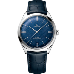 Characterised by its thin and elegant case, the Trésor line was first launched by OMEGA in 1949 and housed the legendary 30mm calibre. More than half a century later, it continues to impress with one of today’s most advanced mechanical movements.This model has a 40 mm stainless steel case, which is presented on a blue leather strap. The domed blue patterned dial includes a date window at 6 o'clock as well as hands and indexes in 18K white gold.Inside, this De Ville Trésor is powered by the OMEGA Master Co-Axial Calibre 8910 and is certified as a Master Chronometer at the industry’s highest standard of precision, chronometric performance and magnetic resistance.