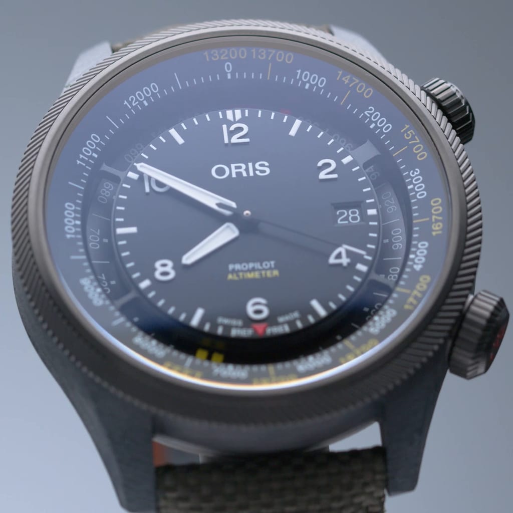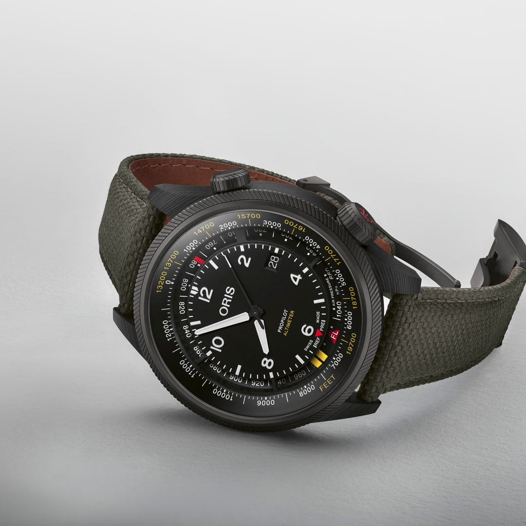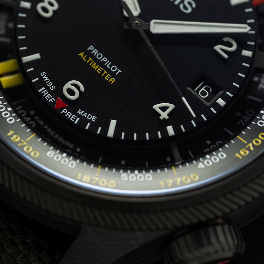 Like the best adventure watches, the ProPilot Altimeter is innovative, lightweight, legible and loaded with functions. Its built-in altimeter can gauge altitude to 19,700 feet, while its 47 mm carbon fibre case means the watch weighs just 98 grammes.