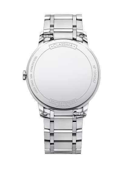With a polished and satin-finished stainless steel case and a matching satin-finished steel bracelet, this wristwatch combines an uncluttered design with enduring quality. It’s powered by a quartz movement. The bracelet is interchangeable, giving the wearer the freedom to change the look with a different watch strap.