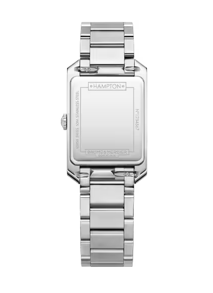 With rhodium-plated Arabic numerals, sword-shaped hands and a Swiss quartz movement, this rectangular watch for women balances graceful design and enduring quality. The watch bracelet is easily interchangeable, giving the wearer the freedom to transform her look when she wants.