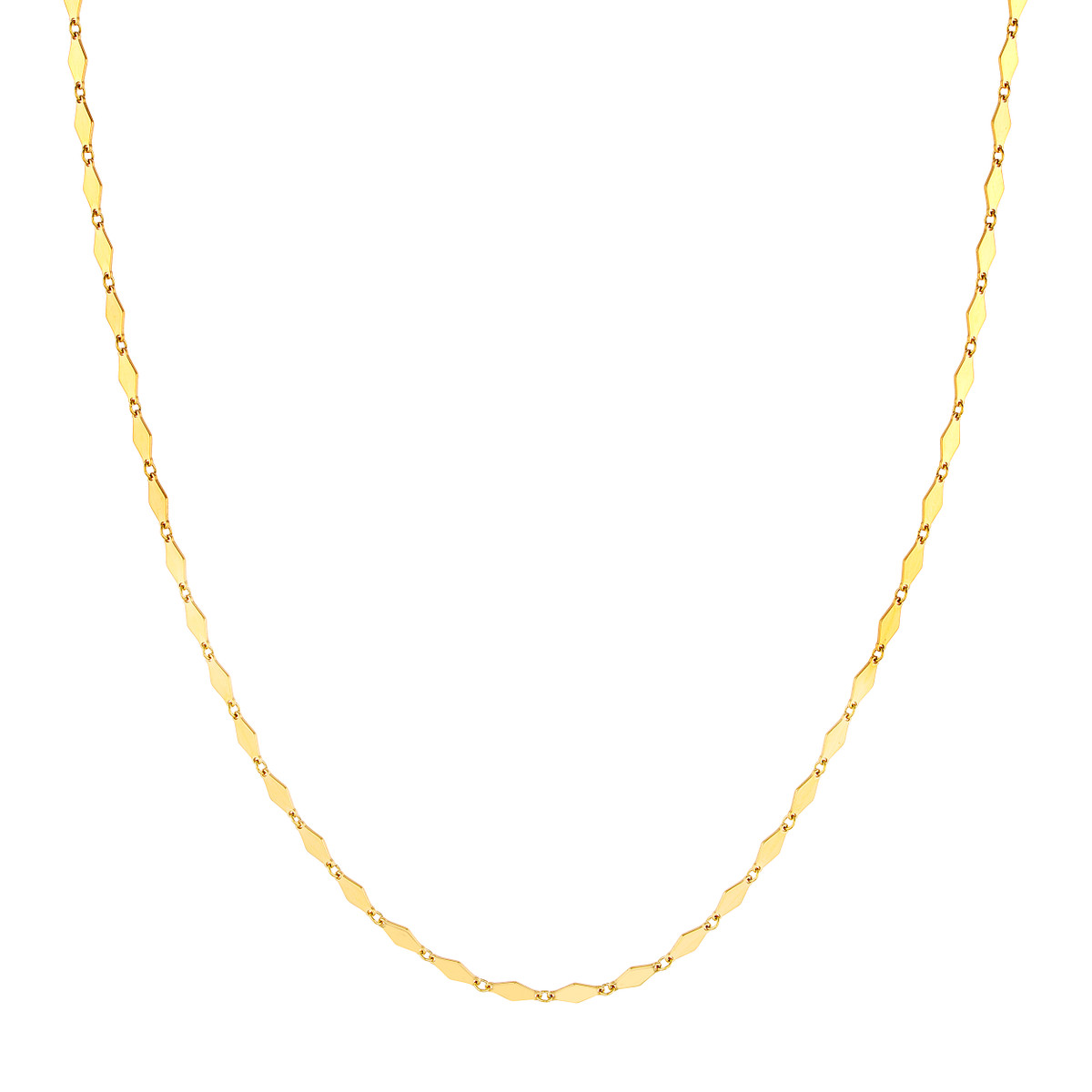 Yellow 14 Karat Mirror Diamond Shape Link Chain Length 18