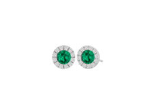 White 18 Karat Stud Earrings With 24 0.15Tw Round Diamonds And 2 0.32Tw Round Emeralds