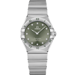 This 28 mm model, with case and bracelet in stainless steel, features indexes and applied elements in 18K white gold, set against a striking green matcha dial.