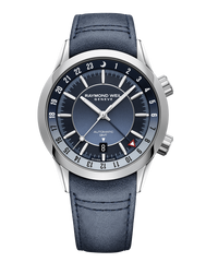 The use of progressive shades of blue in the dial makes this watch a bewitching composition. At the base of it, just above 6 o’clock, a rectangular aperture reveals the date. Presented in white numerals sat atop a blue disc, the colour of the date disc matches the dial, upholding horological etiquette. A 24-hour track is presented on the dial flange and is used in conjunction with the GMT hand to indicate whether the ‘home time’ is day or night. Nocturnal hours are expressed using white numerals set against a blue background, while daytime hours are shown in blue against a white backdrop. A crescent shaped moon denotes the midnight hour. Barrel shaped hour and minute hands collaborate with applied indexes, denoting the ‘local time’. A darkly attired GMT hand, endowed with a prominent triangular red and white tip, succinctly displays the hour at home. A slender silver-toned central sweep seconds hand, fitted with a highly legible lollipop, completes the suite of hands displayed. Both the hands and indexes are treated with Super-LumiNova®, ensuring readability even in dim light.