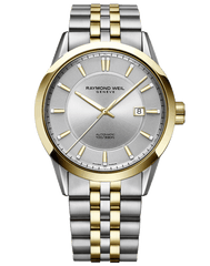 Equipped with an automatic winding movement housed in a 42mm case, this timepiece features a captivating and elegant silver dial with a date function at 3 o’clock. The stainless steel two-tone bracelet is equipped with a double-push security system folding clasp and the screw down crown is embossed with the RW monogram for a touch of refinement. The decorated Swiss-made automatic movement can be seen through the transparent sapphire crystal case back.