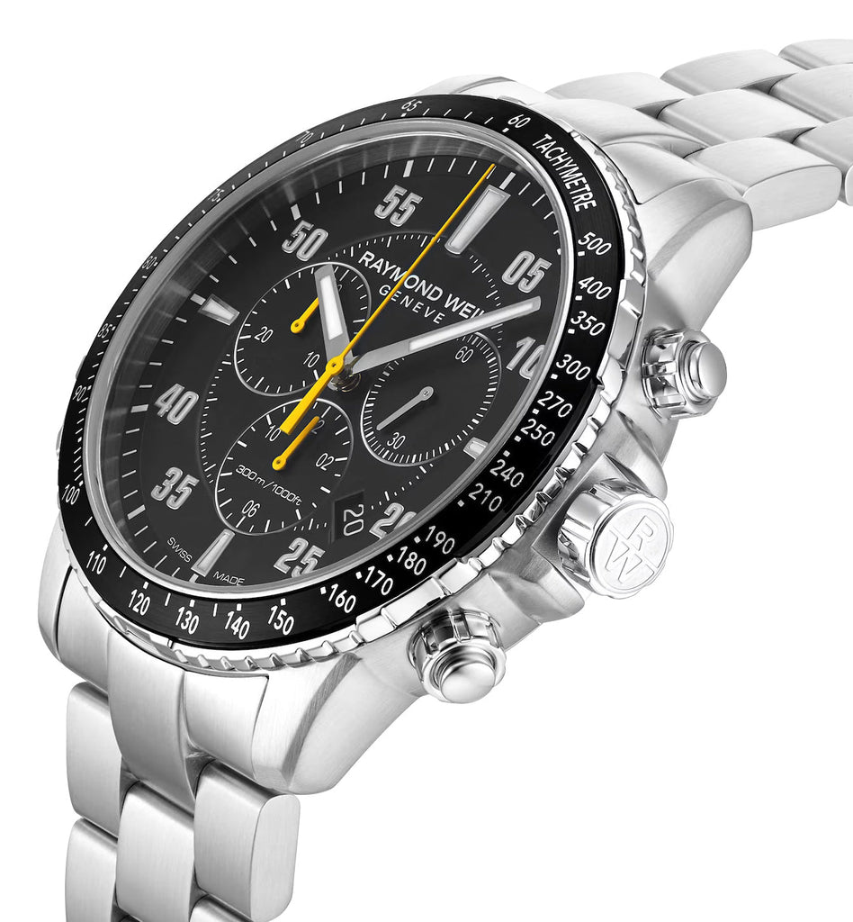 Raymond Weil Chronograph Stainless Steel Black Dial Date Divers Quartz Mens Watch 8570-ST2-05207