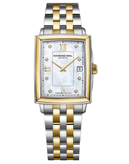 This timepiece of choice is available in several variations. The face comes in combinations of black roman numerals on a crisp white dial or alternating gold & diamond indexes on a mother-of-pearl face.