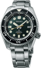 140th Anniversary Limited Edition Saturation Diver. Designed for those who treat life as the ultimate adventure, the Seiko Prospex line meets every challenge with technological excellence and style. To mark the 140th anniversary of the founding of Seiko, Prospex is celebrating its rich legacy of innovation in high-intensity timekeeping and Seiko's role as the preferred watch for explorers under the sea, on land and in the air. Complete with a special Limited Edition caseback, this extraordinary watch, following ISO standards for mixed gas diving at depths of up to 300 meters, also pays tribute to one of the world's leading diving destinations, Irimote Island, one of the Yaeyama Islands, off Okinawa, nicknamed the Galapagos of East Asia, with a rich Island Green theme reflecting the verdant primeval forests of Irimote. Featuring a durable one-piece stainless steel case with super-hard coating, this landmark timepiece includes a black ceramic uni-directional rotating elapsed timing bezel surrounding a green dial with date calendar and large LumiBrite markers and hands designed for enhanced legibility. For deep sea reliability, this saturation diver's watch also offers an anti-reflective sapphire crystal, screwdown crown, stainless steel bracelet with super-hard coating, and tri-fold push-button release clasp with slide adjuster. Designed for increased torque, the 26-jewel caliber 8L35 automatic movement, assembled expressly for diver's watches at the Shizukuishi Watch Studio, offers a frequency of 28,800 vibrations per hour, a power reserve of approximately 50 hours, and manual or automatic winding. Includes an additional green silicone strap. 300m Water Resistant