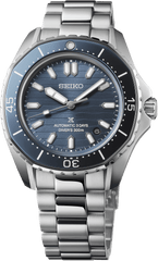 Prospex Automatic Diver’s Watch. Designed for those who treat life as the ultimate adventure, the Seiko Prospex collection meets every challenge with technological excellence and style, continuing the rich legacy of innovation in high-intensity timekeeping. Framed by a coordinating polygonal uni-directional rotating elapsed timing bezel, suited for formal occasions while keeping an active and sporty impression, the warm blue pressed pattern dial, inspired by a calm coastline, offers a date calendar between 4 and 5 o’clock allowing for LumiBrite coating on the hands and all 12 markers, improving symmetry and legibility. With an upgraded power reserve of approximately 72 hours, 3 full days, the 24-jewel automatic movement beats at a frequency of 21,600 vibrations per hour and features manual winding capability. Crafted of stainless steel with super-hard coating, this superbly functional diver’s watch includes a sapphire crystal with anti-reflective coating on the inner surface, as well as a screwdown crown and caseback. The bracelet is designed with mirror polish center links to match the sophisticated case design, which follows ISO standards for scuba diving to depths of 300 meters while maintaining a slim profile. Water Resistant