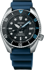 Prospex Automatic Diver's PADI Special Edition. Designed for those who treat life as the ultimate adventure, the Seiko Prospex line meets every challenge with technological excellence and style. Part of a rich legacy of innovation in high-intensity timekeeping, Prospex continues to celebrate a long history of sports watch excellence with re-creations and re-interpretations of landmark achievements. Based on an iconic Seiko design, this Special Edition automatic diver's watch celebrates the partnership between Seiko Prospex and PADI, the world's leading scuba diver training organization, displaying the PADI logo on the black globe-pattern dial. Re-interpreted with upgraded materials, this exceptional watch includes a stainless steel case with durable super-hard coating, and offers vibrant blue dial and bezel accents, a black uni-directional rotating elapsed timing bezel in scratch-resistant ceramic, a screwdown crown and caseback, and a rugged blue silicone strap. The dial features a date calendar and LumiBrite hands and markers. Following ISO standards for scuba diving to depths of up to 200 meters, this exceptional timepiece includes a 24-jewel automatic movement with a frequency of 21,600 vibrations per hour, a power reserve of approximately 70 hours, and manual winding capability. 200m Water Resistant