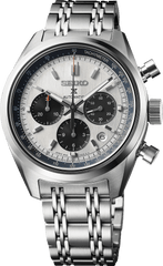 Prospex Speedtimer Mechanical Chronograph. Designed for those who treat life as the ultimate adventure, the Seiko Prospex line meets every challenge with technological excellence and style. Based on Seiko’s 1972 Speedtimer precision chronograph, nicknamed “Panda” by fans, and developed with added style and function to appeal to young motorsports enthusiasts, this superbly tailored timepiece features a newly designed thinner case curved to seamlessly connecting to the bracelet for enhanced sport elegance and wearing comfort. Providing chronograph measurement of up to 12 hours of elapsed time in 1/8-second increments, the proprietary caliber 8R48 34-jewel automatic movement beats at a frequency of 28,800 vibrations per hour, with a power reserve of approximately 45 hours and manual winding capability. The movement includes a column wheel and vertical clutch mechanism allowing for smooth, stutter-free movement of the chronograph hand while providing long-term efficiency, reducing wear and tear and maintaining the power reserve better during chronograph operation. For reliable timing, the three-pointed hammer system ensures that all hands return to zero instantly and in perfect synchronization when the re-set pusher is pressed. The silver dial, framed by a tachymeter scale, features blue-gray subdials and an orange chronograph hand inspired by the colors of the original model, as well as a date calendar and LumiBrite hands and markers. Adding a note of tailored luxury, the multi-row bracelet provides a sleek, comfortable fit. Crafted of stainless steel with a super-hard coating, this extraordinary timepiece also features a dual-curved anti-reflective sapphire crystal, screwdown caseback, and tri-fold push button release clasp. 10 bar, 100M Water Resistant