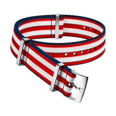 Designed with a straight springbar and a pin buckle for secure and easy fastening, this strap fits watches with a lug width of 19–22 mm. The durable polyamide material ensures comfort and resilience, while the dynamic multicolour design makes it a standout accessory for any casual or sporty watch.
