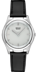 From the Essentials Collection. Offering classic dress/sport designs, the Essentials Collection provides the ideal solution for everyday wear. Crafted of stainless steel, this tailored watch features silver dial with a hinged acryllic crystal that opens so the time can be detected by touch. With a functional black strap with a folding clasp.