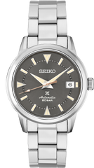1959 Sports Watch Reinterpretation. The first Seiko sport watch - elegant, yet rugged and superbly functional - the Laurel Alpinist is reimagined in this distinctive watch, designed to celebrate the beginnings of Seiko's rise to the forefront of high-intensity timekeeping. Styled to fit contemporary tastes while evoking a vintage feel, this exceptional watch is as smooth and refined as the prized original, but far more powerful. With the original's mountain-shaped markers at 12, 6 and 9 ensuring legibility while referring to its mountaineering inspiration, this versatile design features a gray dial with date calendar and LumiBrite hands and markers, as well as a curved sapphire crystal with anti-reflective coating on the inner surface. The 24-jewel automatic movement beats at a frequency of 21,600 vibrations per hour, with a power reserve of approximately 70 hours, and can be wound manually or automatically. Crafted of stainless steel, with screwdown crown and see-through caseback, and tri-fold push button release clasp. 20 bar, 200M Water Resistant