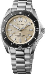 Prospex Automatic Diver’s Watch. Designed for those who treat life as the ultimate adventure, the Seiko Prospex collection meets every challenge with technological excellence and style, continuing the rich legacy of innovation in high-intensity timekeeping. Framed by a black polygonal uni-directional rotating elapsed timing bezel, suited for formal occasions while keeping an active and sporty impression, the ivory pressed pattern dial, inspired by a calm coastline, offers a date calendar between 4 and 5 o’clock allowing for LumiBrite coating on the hands and all 12 markers, improving symmetry and legibility. With an upgraded power reserve of approximately 72 hours, 3 full days, the 24-jewel automatic movement beats at a frequency of 21,600 vibrations per hour and features manual winding capability. Crafted of stainless steel with super-hard coating, this superbly functional diver’s watch includes a sapphire crystal with anti-reflective coating on the inner surface, as well as a screwdown crown and caseback. The bracelet is designed with mirror polish center links to match the sophisticated case design, which follows ISO standards for scuba diving to depths of 300 meters while maintaining a slim profile. 300m Water Resistant