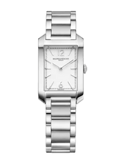 With rhodium-plated Arabic numerals, sword-shaped hands and a Swiss quartz movement, this rectangular watch for women balances graceful design and enduring quality. The watch bracelet is easily interchangeable, giving the wearer the freedom to transform her look when she wants.