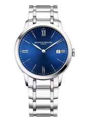 With a contemporary style, this 40 mm men’s Swiss steel watch is for the modern professional who values a more sophisticated aesthetic. A date aperture sits at 3 o’clock and iconic Roman numerals make the hours around a blue dial. The polished steel bracelet with triple-folding clasp fits neatly with the steel case. Designed for precision timekeeping, the Classima 10382 is driven by Swiss-made quartz movement.