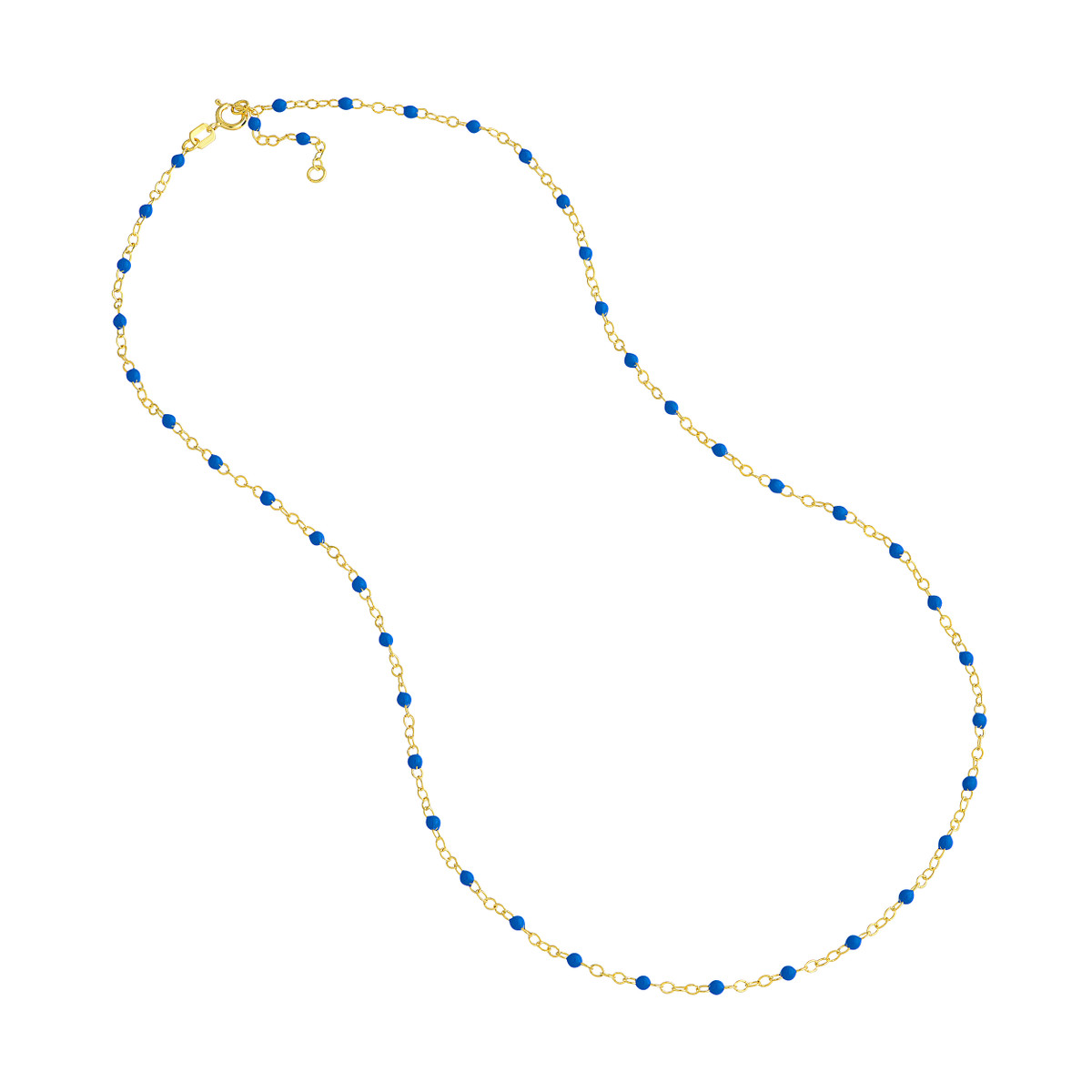 Lady's Yellow 14 Karat Piatto Chain With Cobalt Blue Enamel Beads Necklace Length 18