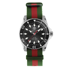 Gucci Dive Black Dial Green and Red Nylon Strap YA136364