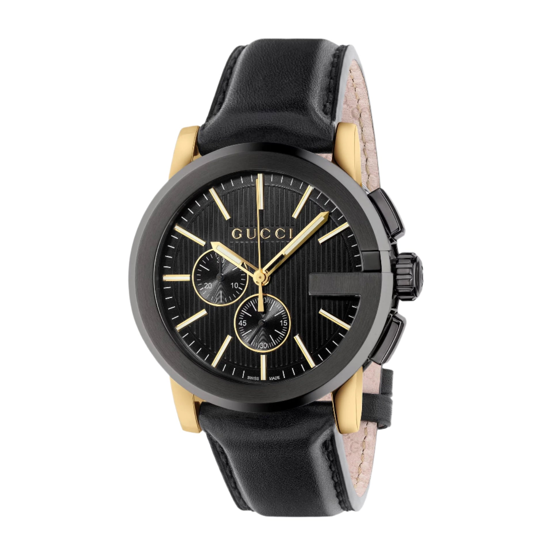 The G-Chrono watch is defined by the iconic G-shaped bezel, paying homage to the House. The contemporary design lends a modern, sporty look.
