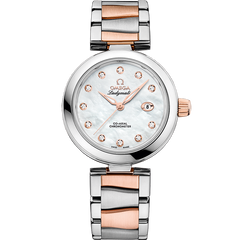 When the Ladymatic first appeared in 1955, it became a defining timepiece in women's fashion Six decades on, it still retains every ounce of captivating style and grace In this model, the stainless steel case is enhanced by a brushed metallic bracelet with waved edges, crafted from 18K Sedna™ gold and stainless steel Sedna™ gold also features on the polished alpha-shaped hands, as well as 11 indexes, which are set with diamonds The attractive dial is made with white, mother-of-pearl, to accentuate the feminine touch Days are tracked by a date window at 3 o'clock, while the inner body includes the OMEGA Co-Axial calibre 8520