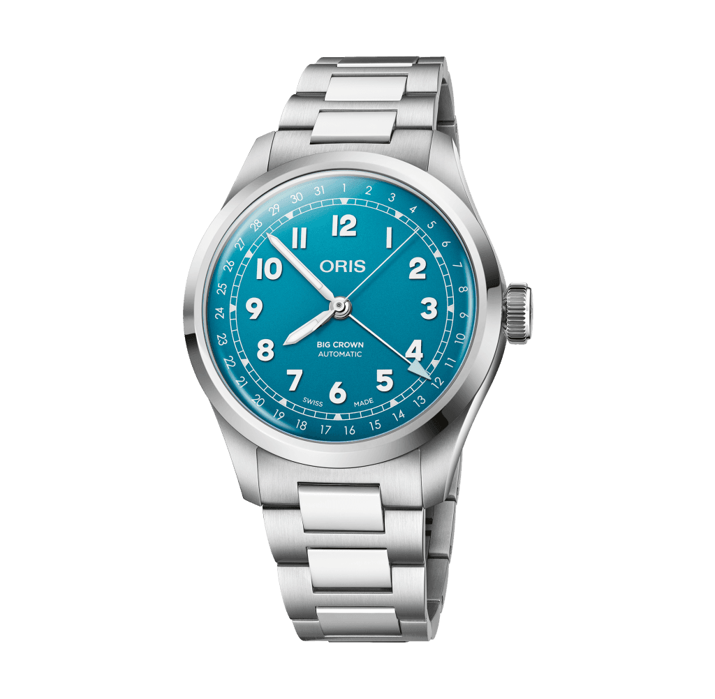 ORIS wristwatch, Big Crown Pointer Date, 40 mm, steel bracelet, blue dial automatic, Cal. CAL.754, centre seconds, sapphire-crystal, 5 atm/screw-down crown,0175477984065-0782006